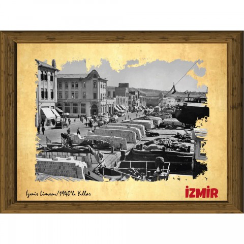 Eski İzmir 13,5x18 cm Çerçeve Görünümlü 5'li Ahşap Tablo Seti, Siyah Beyaz Tablo