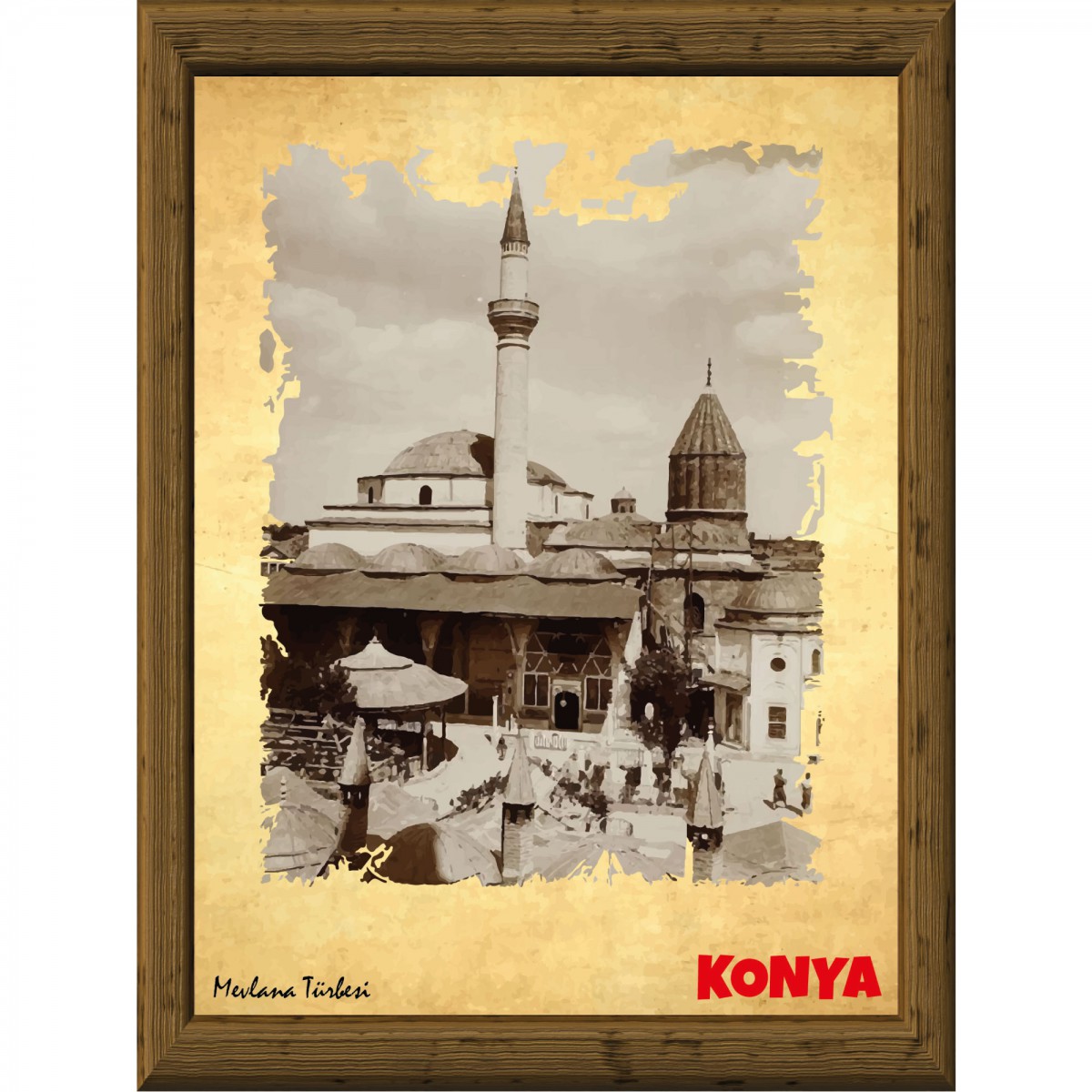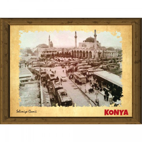 Eski Konya 13,5x18 cm Çerçeve Görünümlü 5'li Ahşap Tablo Seti, Siyah Beyaz Tablo